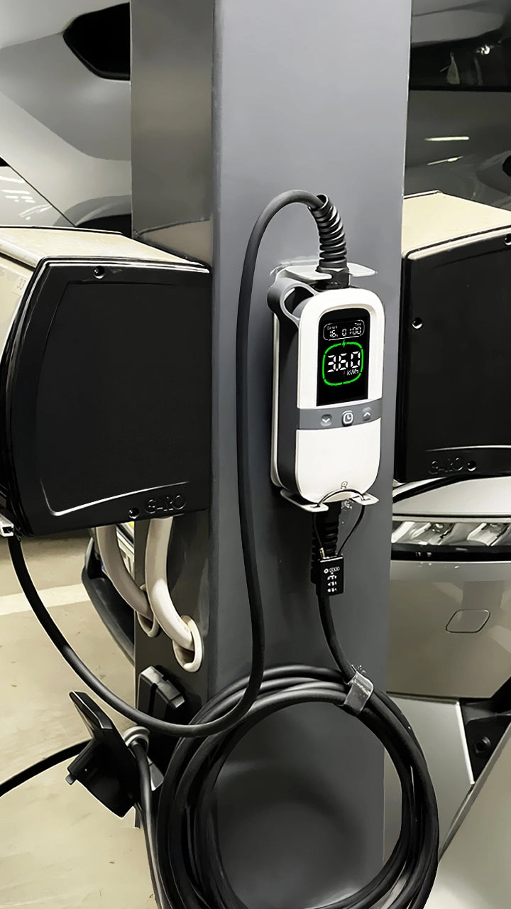 • Portable Design: 7.5-meter cable, compact build with carrying handle and bag. Adjustable current (6-16A) for safe charging anywhere.